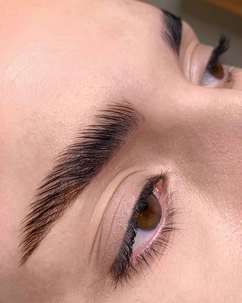 Эта процедура появилась несколько лет назад, но не имела широкого распространения. Ламинирование бровей (как и ламинирование ресниц), лифтинг, долговременная укладка, биозавивка — всё это красивые названия по сути одной процедуры. Это процедура придания волоскам нового направления за счёт разрушения белковых связей внутри волоса тиогликолевой кислотой или её производными. Коллагенирование, протеиновое восстановление бровей — это дополнительные ухаживающие составы в ходе процедуры. Какой эффект даёт ламинирование бровей? Ламинирование делает брови более послушными и укладывает их в нужном вам направлении, за счёт питания волоски становятся плотными, брови выглядят более объемными и естественно густыми. Эффект «соболиных бровей» длится от 4-8 недель. Всё зависит от скорости обновления своих волосков и от вашего типа кожи.