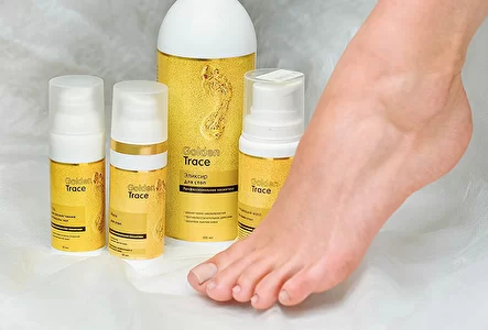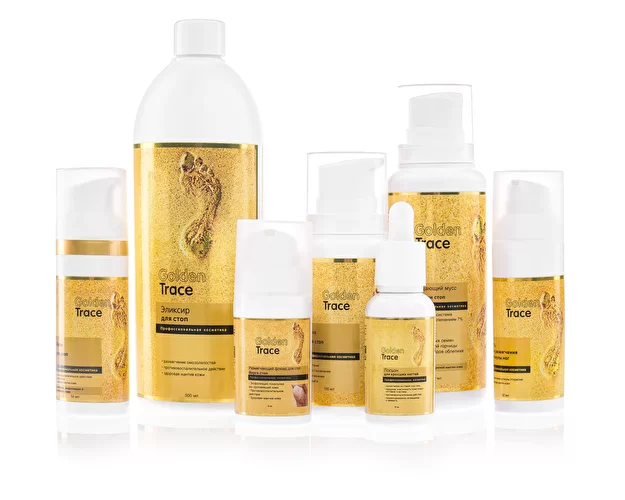 Golden Trace — это профессиональная линия средств для педикюра. Система Golden Trace сделана в соотвествии с ГОСТами на производстве, имеющем сертификат ISO 9001:2015. Golden Trace имеет все необходимые сертификаты, выданные на основании протоколов исследований. Каждый ингредиент, входящий в состав препаратов, имеет заключения о безопасности и паспорт качества. Golden Trace сделана на деонизированной воде. Препараты и ингредиенты, входящие в состав, не тестировались на животных. В качестве кератоликов используются ферменты. Все препараты направлены на сохранение, восстановление кожи и изменение её структуры. Golden Trace не содержит: